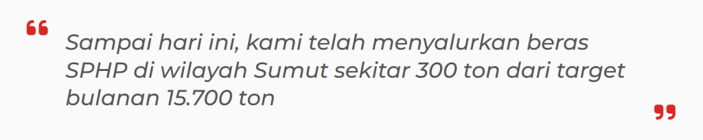 Ia menyatakan secara keseluruhan Bulog Sumut akan mendistribusikan beras SPHP sebanyak 77.500 ton total keseluruhan di kabupaten dan kota di Sumut per tahun.