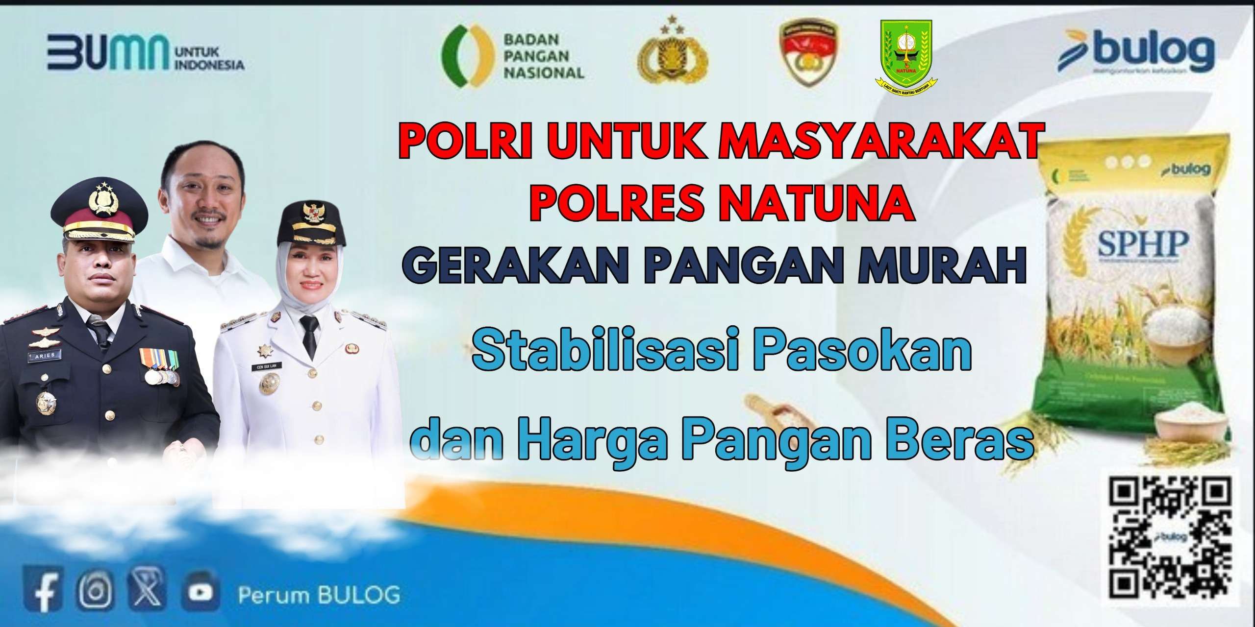 KBRN Ranai; Dalam semangat kebersamaan menyambut Dirgahayu Republik Indonesia yang ke-80, Polres Natuna bersama Perum Bulog Kabupaten Natuna menggelar Gerakan Pangan Murah di Alun-Alun Kota Ranai Pantai Piwang, pada hari Jum’at (08/08) Pukul 09.00 Wib. Kegiatan ini bertujuan untuk membantu masyarakat di tengah masa sulit dengan menjaga stabilisasi pasokan dan harga pangan di wilayah Natuna.