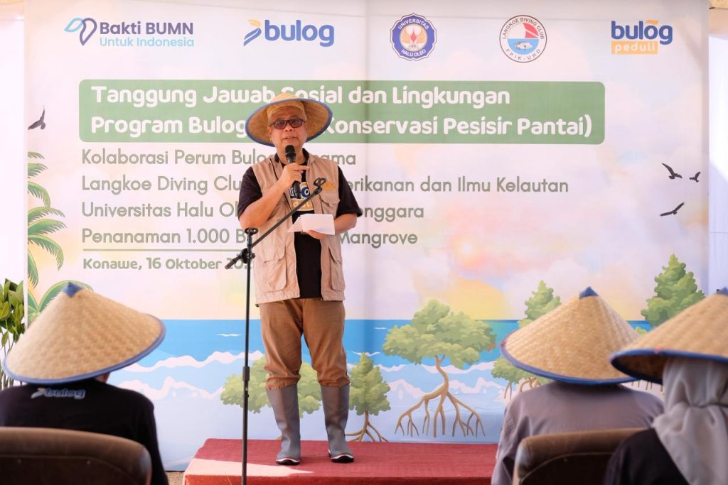Konawe, 16 Oktober 2025 – Perum BULOG kembali menunjukkan komitmennya terhadap pelestarian lingkungan melalui kegiatan penanaman 1.000 bibit pohon mangrove di pesisir Desa Tapulaga, Kecamatan Soropia, Kabupaten Konawe, Sulawesi Tenggara. Kegiatan ini merupakan bagian dari program BULOG Peduli Hijau yang berfokus pada konservasi hijauan pesisir pantai dan mendukung Tujuan Pembangunan Berkelanjutan (TPB) ke-14, yaitu Ekosistem Lautan.